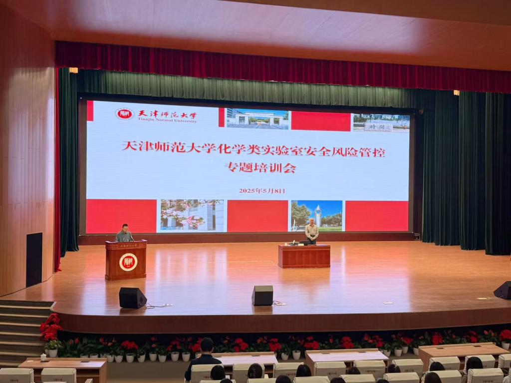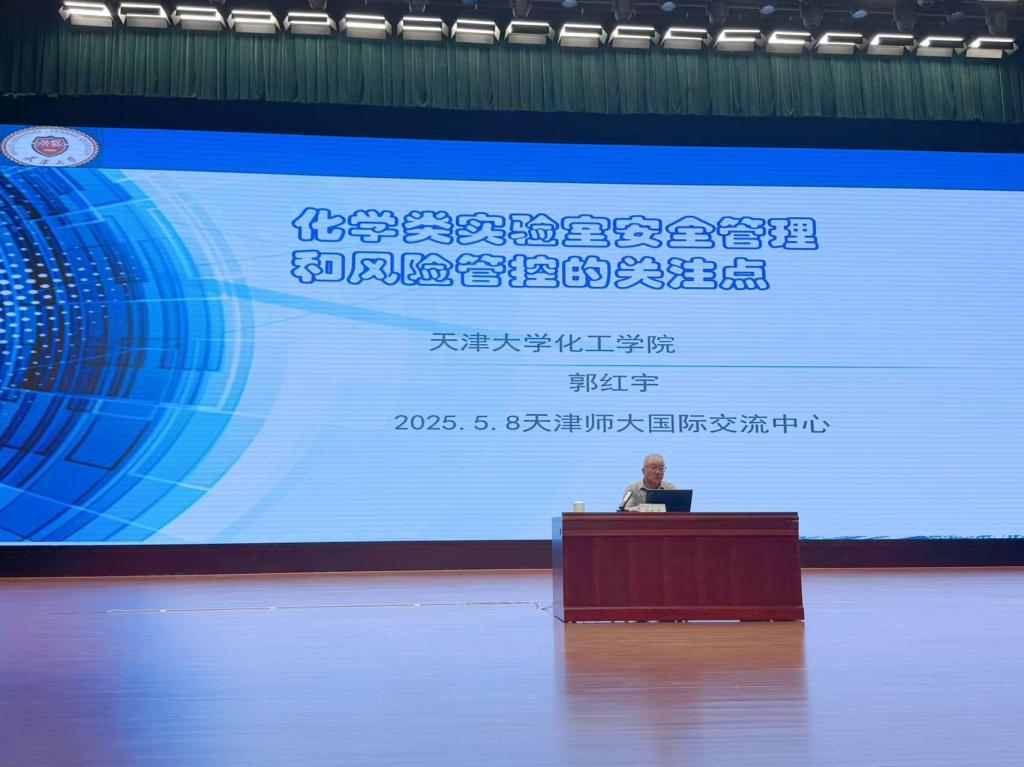 本站訊(通訊員 張彥茹)為深入貫徹落實市教育兩委和學校近期關于校園安全穩定的決策部署,進一步加強化學類實驗室安全管理,強化風險防控意識,掌握實驗操作技能,提升應急處置能力,切實保障師生生命財產安全,5月8日下午,由國有資產管理處主辦,化學學院承辦的化學類實驗室安全風險管控專題培訓會在國際學術交流中心舉辦。邀請天津大學化工技術實驗中心原主任郭紅宇副教授作專題講座,化學學院、生命科學學院、物理與材料科學學院、水資源與水環境重點實驗室、電子與通信工程學院、地理學部的實驗室安全分管領導、院級安全管理員、涉化實驗室師生1000余人參會。國有資產管理處處長王振國主持會議并為郭紅宇副教授頒發實驗室技術安全督導專家聘書。