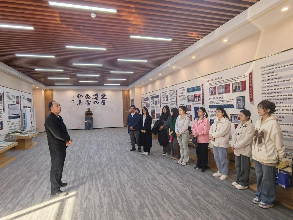 師生來到沈德立先生銅像前,清理周邊環境,大家圍繞銅像緩緩行進,仔細瞻仰先生銅像,表達對沈德立先生卓越貢獻的崇高敬意與深切緬懷。在沈德立科學家精神教育基地,結合圖片實物等資料王曉莊教授做了生動講解,40多年前,沈先生白手起家,艱苦創業,堅持學科交叉、理論與實踐相結合的學術思想,把我校心理學科建設成為地方高校唯一的國家級重點學科,生動詮釋了科學家精神和教育家精神的內涵,感悟先生“愛國、尊師、勤奮、認真”的治學精神和“人以德立”的崇高品質。