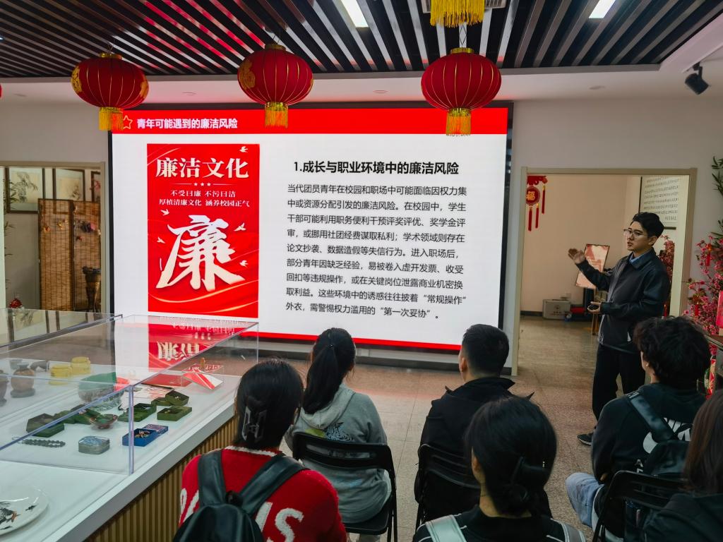 活動伊始,徐芃澤老師以“青春有為 廉潔有我”為主題講授廉潔團課。作為天津市“青廉宣講團”成員,他結合黨的二十大報告中“青年強,則國家強”的囑托,通過三組對比展開教學。在講座中,他系統解讀習近平總書記對青年“扣好人生第一??圩印钡囊笄衅谕崂怼吨袊伯a主義青年團章程》中的紀律要求;剖析近年來高校青年團員違紀典型案例,結合數學學科發展史中“陳省身拒絕國際數學聯盟不當經費”等學界軼事,闡明“學術誠信與廉潔精神同源”;設置“當科研誠信與利益誘惑沖突時如何抉擇”情景模擬,教育引導學生如何樹立正確的世界觀、人生觀、價值觀,堅定理想信念做新時代有為青年。