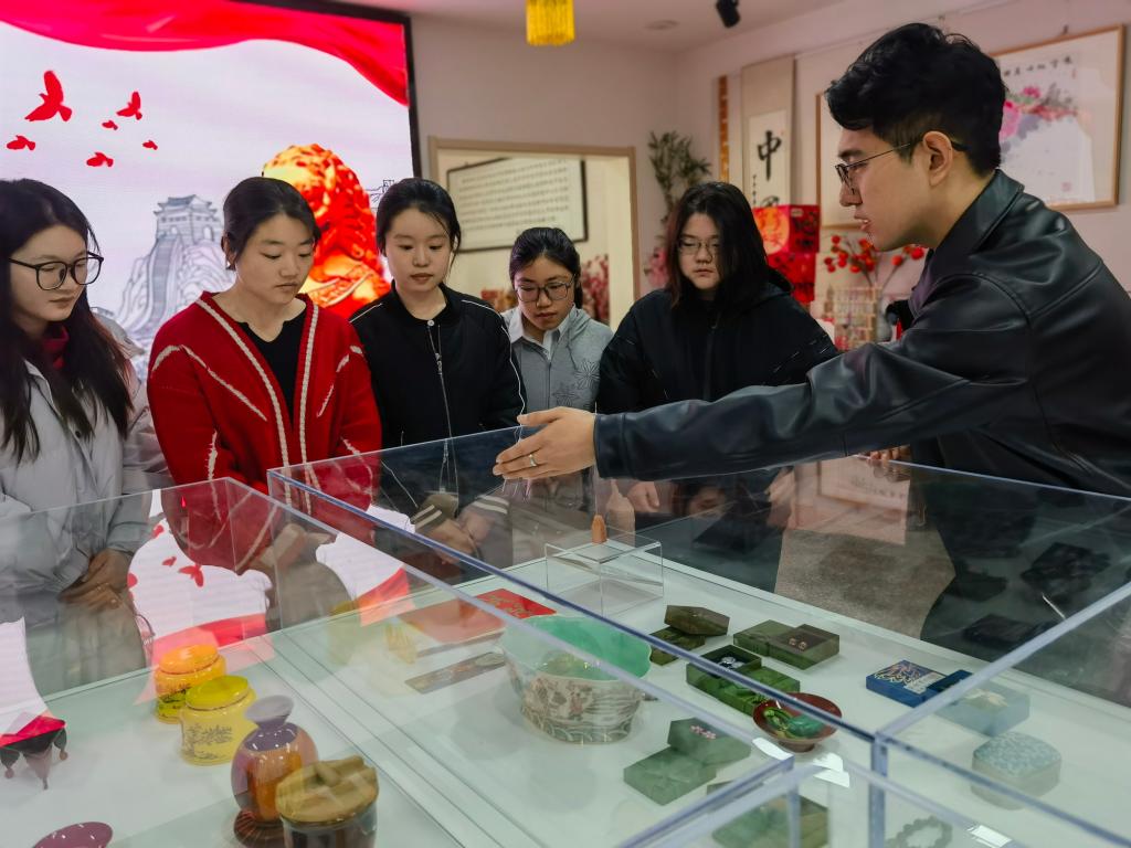 本站訊(通訊員 上官萌萌)為進一步涵養學生廉潔意識,落實新時代立德樹人根本任務,扎實推進“廉潔文化進校園”落地生根,3月26日下午,天津師范大學數學科學學院黨委副書記兼紀委書記彭永剛帶隊,組織師生10余人赴天津市北辰區半畝方塘非遺文化學院,開展“津門古韻潤初心 數學青年承文脈”廉潔文化主題團課實踐活動。全國青年馬克思主義者培養工程學員、半畝方塘非遺文化學院負責人、白氏點翠修復與制作技藝非遺傳承人李靖,北辰區青年志愿者協會副會長徐芃澤共同參與活動。