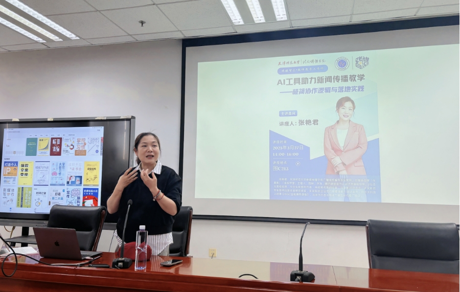 本站訊(通訊員 高宇)3月27日,新聞傳播學院首場“傳媒智匯·教師教學工作坊”在學院報告廳舉行。本次活動以“AI工具助力新聞傳播教學”為主題,特邀廣播電視編導專業張艷君老師擔任主講人。學院全體教師齊聚一堂,共同探索人工智能技術與新聞傳播教學的深度融合。