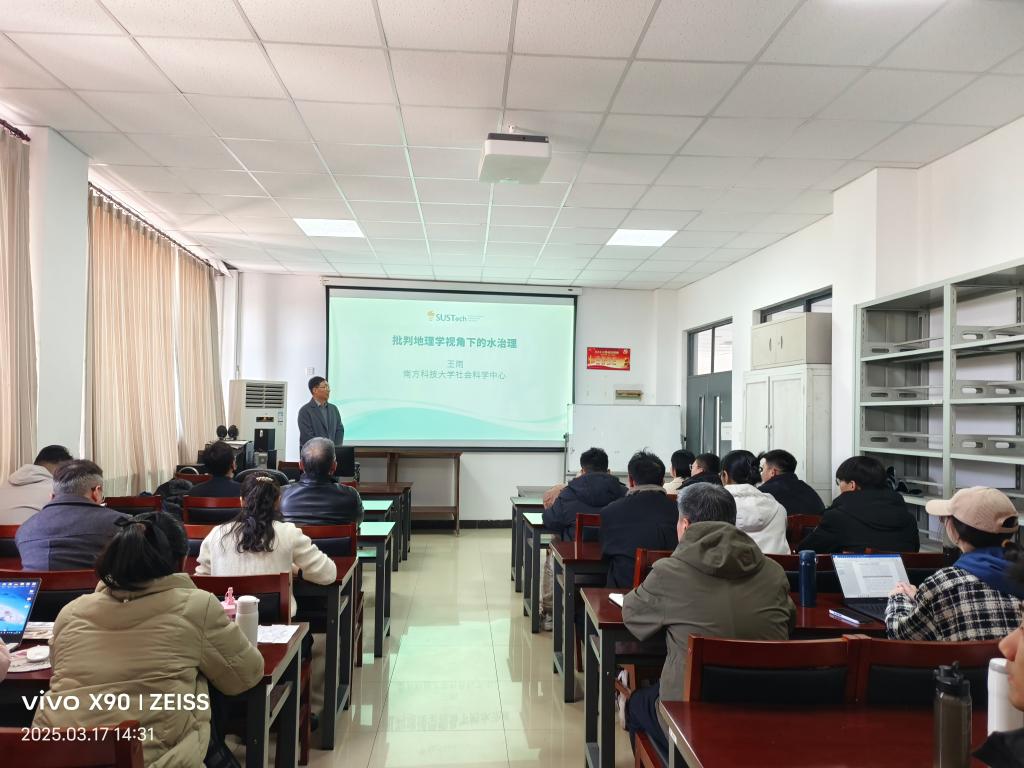 本站訊(通訊員 劉琳)3月17日下午,地理學部邀請南方科技大學社會科學中心王雨研究員開展學術交流活動,王雨以“批判地理學視角下的中國水治理”為題作學術報告。報告會由人文地理與城鄉規劃系主任王淑芳教授主持,來自地理學部的50余名師生聆聽了報告。