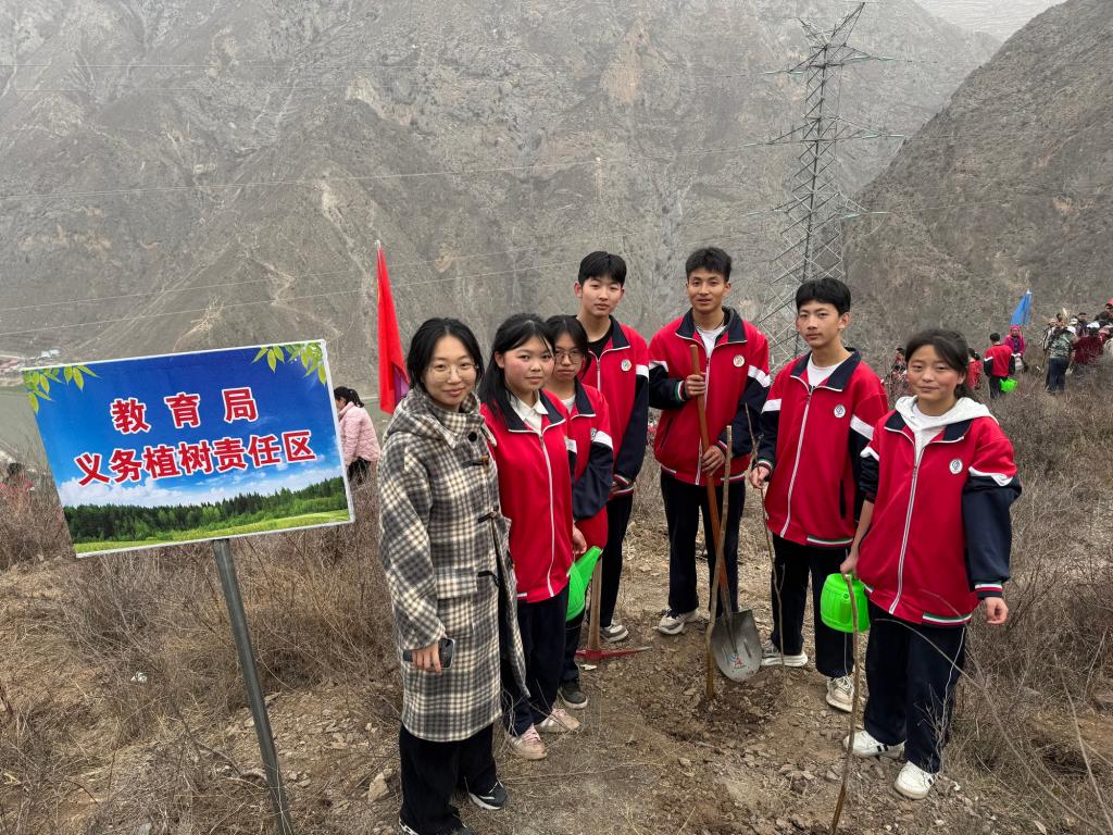 誓師動員后,支教團(tuán)與舟曲一中師生手拿鐵鍬,扛起樹苗,攜手踏上曲折的山路。行進(jìn)途中,支教團(tuán)帶隊(duì)教師劉瑞從生態(tài)系統(tǒng)的保護(hù),到綠色發(fā)展理念的踐行為同學(xué)們進(jìn)行現(xiàn)場教學(xué),引導(dǎo)大家主動提高生態(tài)文明意識,增強(qiáng)生態(tài)環(huán)境保護(hù)的思想自覺和行動自覺。