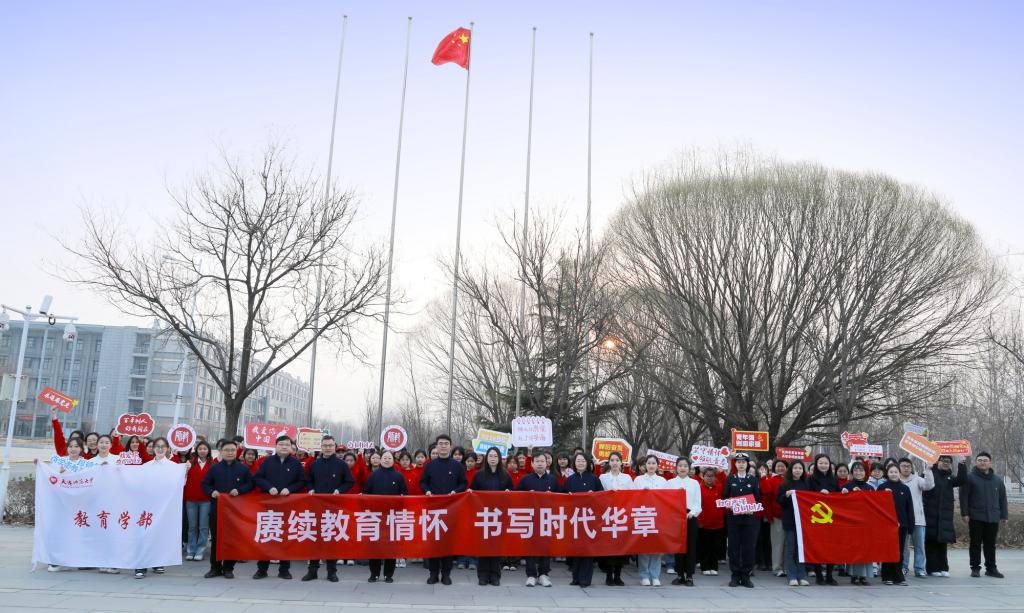 本站訊(通訊員 王立冬)3月10日晨光初露,教育學部“賡續教育情懷,書寫時代華章”主題升旗儀式在體育場廣場前舉行。學部領導班子成員、黨委委員、輔導員和百余名師范生代表參加。