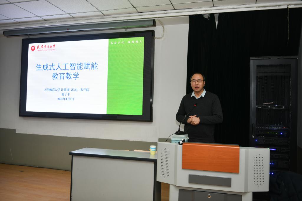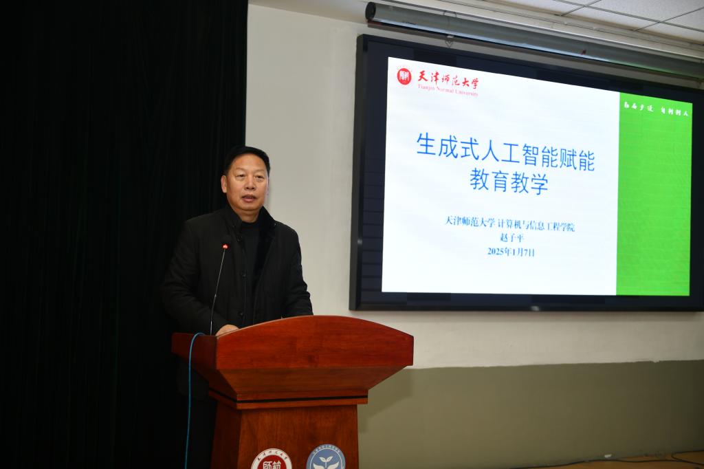 本站訊(通訊員 任一嬌)1月7日,一場聚焦教育前沿領域的知識盛宴在學前教育學院熱烈展開。天津師范大學計算機與信息工程學院黨委副書記、院長趙子平教授應邀座客學前教育學院開展開蒙講堂,為全體教職工帶來一場主題為“生成式人工智能賦能教育教學”的精彩講座。