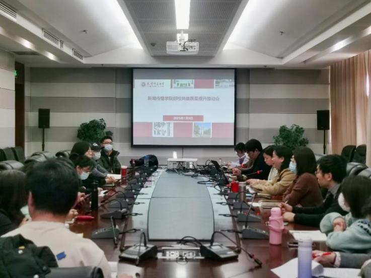 本站訊(通訊員 高宇)1月8日下午,新聞傳播學院召開部校共建質量提升推動會,會議由新聞傳播學院黨委書記張家玥主持。學院黨委副書記徐世淵,副院長林靖、胡振宇,新聞學系、廣告學系、廣播電視學系系主任和副主任,馬新觀課程任課教師,教學、科研、學工辦公室有關負責老師參加推動會。