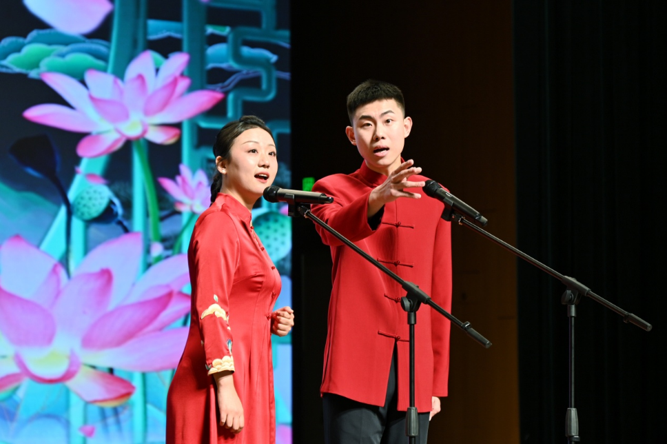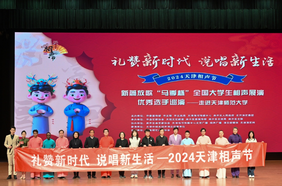 本站訊(通訊員 吳珊)為深入學習宣傳貫徹黨的二十大精神,緊緊圍繞習近平總書記“四個善作善成”重要指示要求,努力打造津派文化品牌,全面貫徹落實市委、市政府“十項行動”總體規劃,推進我市文化繁榮發展,促進津派相聲藝術發展創新,推出更多相聲優秀作品和表演人才。12月11日晚,“2024天津相聲節”天津師范大學專場——新蕊放歌“馬季杯”全國大學生相聲展演優秀選手巡演在天津師范大學國際學術交流中心隆重舉行。天津師范大學黨委統戰部部長張向東、財務處處長張吉麗、天津市曲藝家協會副主席,秘書長李沖、天津市曲藝家協會副主席,天津廣播電視臺《魚龍百戲》制片人,總導演宋東、天津師范大學音樂與影視學院黨委書記滕杰、院長楊愛君蒞臨現場。天開西青園企業代表、精武鎮部分干部群眾、天津師范大學師生共700余人進行觀看,場面宏大,反響熱烈。
