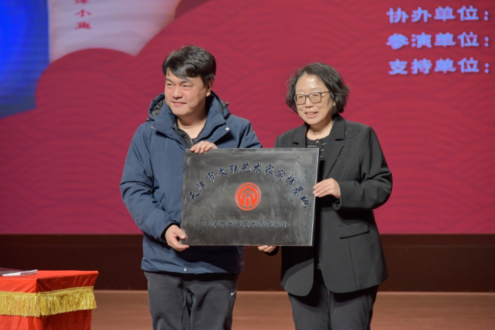 演出前,李沖向天津師范大學音樂與影視學院頒發了“天津市文聯藝術家實踐基地”牌匾。