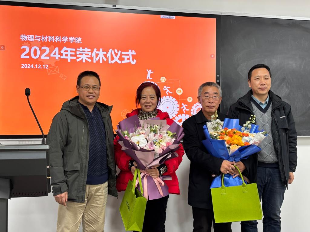 本站訊(通訊員 郝健強)12月12日,物理與材料科學學院舉行2024年退休教師榮休儀式。鄧湘云、趙輝兩位退休教師和學院領導班子全體成員出席活動,學院全體教職工參加活動。榮休儀式由學院黨委書記張偉主持。