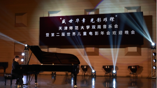 本站訊(通訊員 吳珊)日前,“盛世華章,光影璀璨”天津師范大學雙周音樂會暨世界兒童電影第二屆年會歡迎晚會在我校音樂廳舉辦。晚會現場,燈光璀璨,氣氛熱烈。世界兒童電影第二屆年會嘉賓及我校師生齊聚一堂,共同享受這場藝術盛宴。