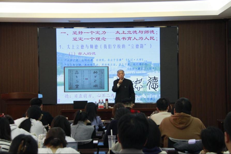 本站訊(通訊員 周二保)為大力弘揚和踐行教育家精神,培養造就新時代高水平教師隊伍,歷史文化學院于11月21日邀請退休教師李海濤舉辦“師德與教育”主題講座。學院黨政主要負責人、骨干教師及師范生代表等百余人參加活動,講座由歷史學聯合黨委副書記徐顯達主持。