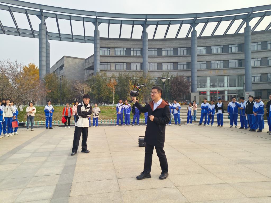在時間廣場,梁玉斌老師為同學們講解了無人機的構造、工作原理、航行軌跡等知識,并在現場進行了模擬飛行。梁老師還結合自身科研成果詳細介紹了無人機在各個領域的重要應用,讓同學們了解這項前沿科技,幫助他們建立對科技發展的正確認知,樹立科技報國的理想信念。
