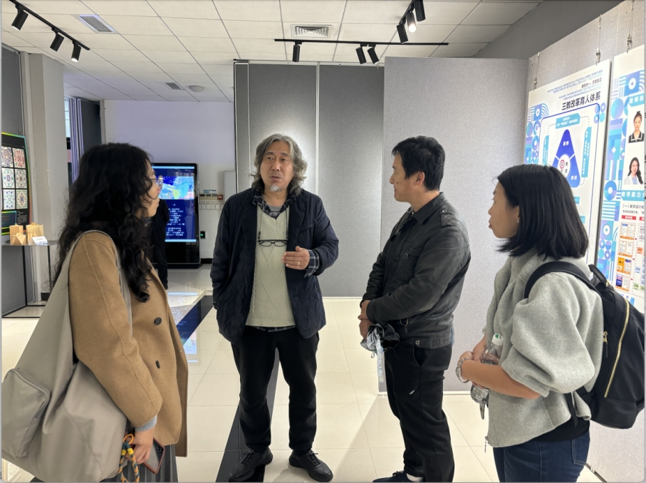 座談會后,趙世勇現場展示了人工智能與科技藝術協同創新平臺的云工作站大模型平臺相關操作,介紹了《節氣靈獸》創意作品、AI數字人和一系列產教融合產品。調研一行還參觀了天津商務職業學院廣告學院協同創新中心,交流了AIGC實踐教學情況。