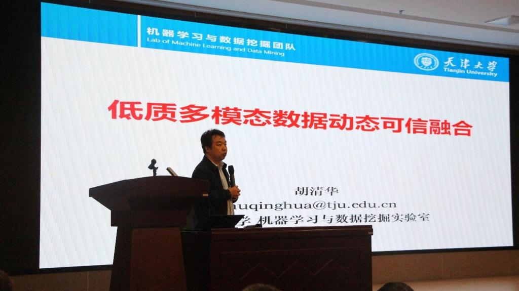 會(huì)議期間,在我校京津冀教師發(fā)展協(xié)同創(chuàng)新中心舉行系列主旨報(bào)告。中國科學(xué)院心理研究所原所長、上海交通大學(xué)心理學(xué)院院長傅小蘭教授,北京理工大學(xué)胡斌教授,南開大學(xué)段峰教授,天津大學(xué)胡清華教授應(yīng)邀出席,并分別以《微表情與偽裝表情研究》《心理生理計(jì)算與精神障礙診療》《基于腦機(jī)接口的人機(jī)交互技術(shù)》《低質(zhì)多模態(tài)數(shù)據(jù)動(dòng)態(tài)可信融合》為題作報(bào)告,分享心理健康與智能評估領(lǐng)域的最新研究成果和前沿動(dòng)態(tài)。
