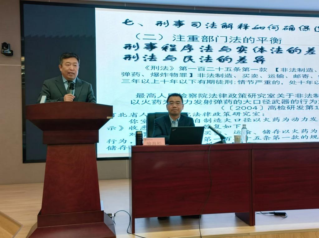 郝磊介紹,喻海松致力于刑事司法解釋的起草工作以及案例庫的建設,在法學領域造詣深厚,曾在眾多權(quán)威法律期刊上發(fā)表數(shù)十篇學術(shù)論文,感謝其為天津師范大學法學院師生進行專題報告。