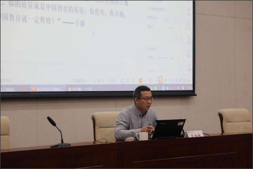 本站訊(通訊員 李倩 王雁)10月26日,我校舉辦“卓越教師培養(yǎng)系列活動——走近教育管理者”報告會。學(xué)校邀請?zhí)旖蚴薪涛行W(xué)處處長龍祖勝以“教育強國建設(shè)背景下,基礎(chǔ)教育高質(zhì)量發(fā)展的路徑與策略”為題作報告。全校200余名公費師范生和師范生到場聆聽。