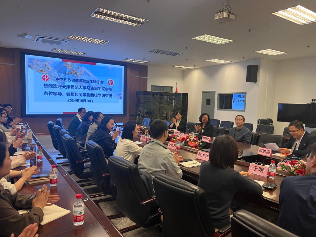 本站訊(通訊員 金明昊)為深入學習貫徹習近平總書記視察天津重要講話精神,認真落實黨中央、國務院“穩就業”“保就業”決策部署,助推我院2025屆畢業生高質量充分就業,10月18日下午,馬克思主義學院師生代表走進天津市第一中學“訪企拓崗”,開展了一場別開生面的中學思政課教師職業體驗活動。天津市第一中學校長楊靜武,馬克思主義學院黨委副書記、紀委書記張素玲出席活動,雙方師生代表共計20余人參加活動。