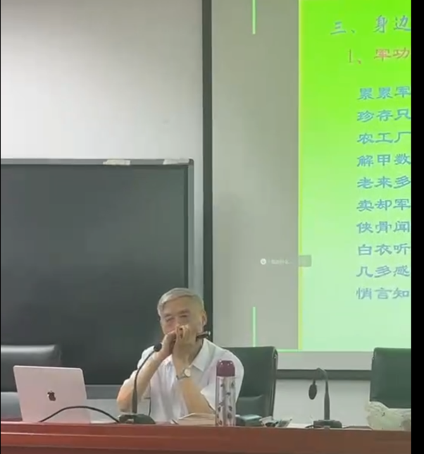 李老師在講座中傾情教唱革命歌曲《軍民大生產》,“自己動手么嗬嗨,豐衣足食么嗬嗨,加緊生產(西里里里 擦啦啦啦 嗦啰啰啰太)為抗戰呀么嗬咳”。來自22新聞專業的學生許帆積極跟唱并高舉雙臂鼓掌。她說,“我深受感動。作為一名新聞學子,我應該在采訪等方面多加勞動,不怕吃苦,奮斗在新聞一線。”郭鈺欣在講座后深有感觸,“新聞人常被稱為‘時代的記錄者’,我們的筆端常常記錄著勞動者的辛勤付出和輝煌成就。這次勞動教育講座,讓我更加深入地理解了勞動的價值和意義,也為我未來的新聞工作提供了更為廣闊的視角。”