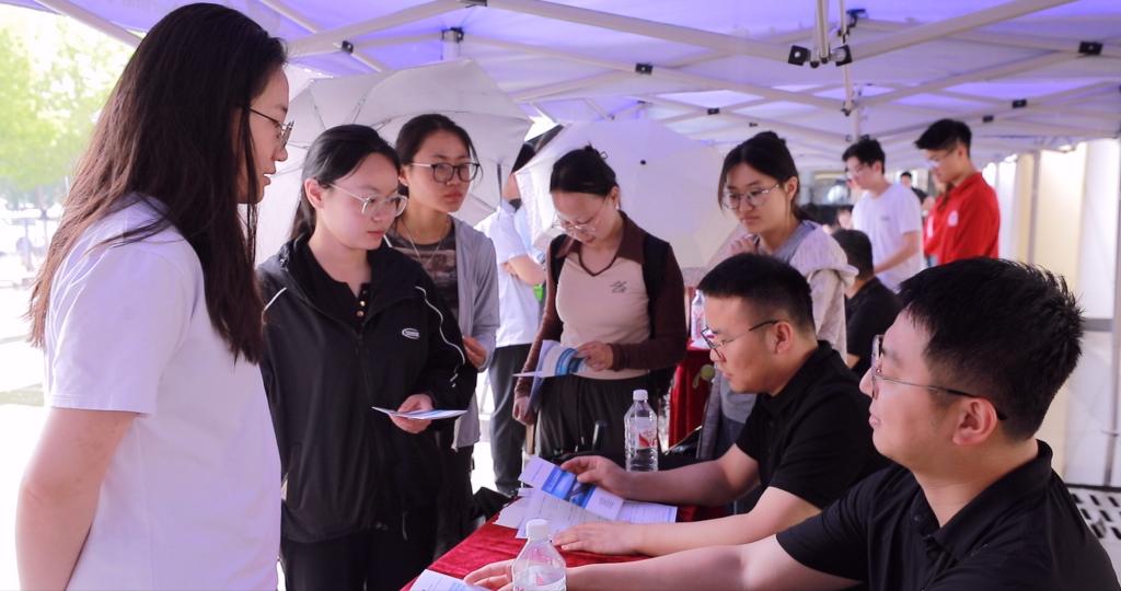 團市委基層建設部、學校部相關負責同志來到招聘會現場調研招聘情況。盡管雨勢不減,但招聘會現場氛圍熱烈,畢業生們與招聘單位互動交流,介紹自己的專業技能和綜合素質,招聘單位熱情地向學生介紹單位情況、崗位需求和發展前景,為學生提供職業規劃指導。