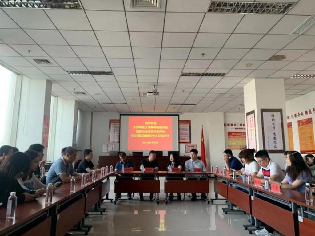 在東麗融媒體中心,東麗區融媒體中心負責人向師生介紹了該中心的發展歷程和取得的成就,并帶領師生實地參觀了東麗區融媒體中心的指揮調度中心、演播室、后期制作室等,深入了解融媒體中心的運作流程和業務開展情況。參觀結束后,融媒體中心負責人與播音系師生開展深入的交流研討,融媒體中心和學院雙方達成共識,未來將繼續保持良好合作關系,培養優質播音人才。