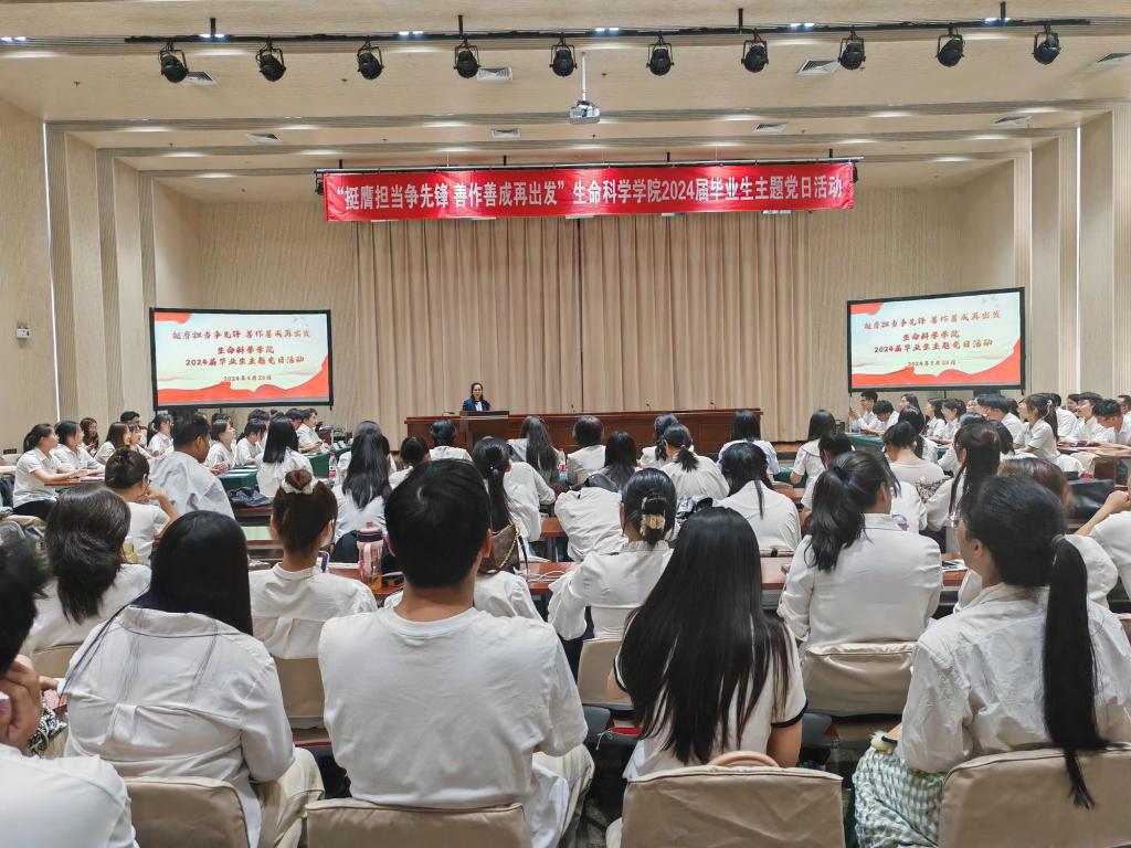 生命科學學院消息(通訊員 付博菲)5月28日,生命科學學院在會議中心三樓多功能廳召開“挺膺擔當爭先鋒 善作善成再出發”2024屆畢業生主題黨日活動。學院黨委書記石婕、校黨委學工部副部長許純、師生黨員代表及全體2024屆畢業生黨員參加活動。