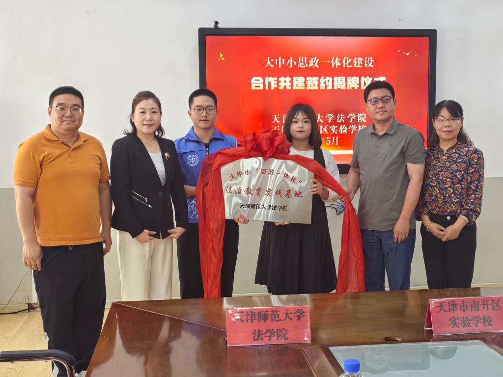 法學院與南開區實驗學校共同簽署了合作共建協議書,并正式揭牌大中小“思政一體化”法治教育實踐基地,標志著雙方在法治教育和愛國主義教育領域將開展更為緊密和深入的合作,共同致力于提升中小學生的法治素養和愛國情懷。