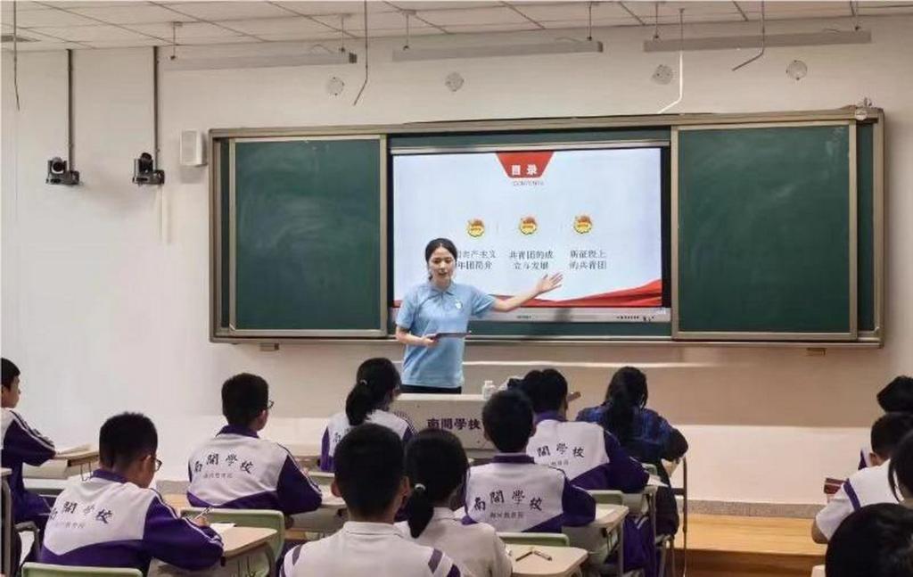 “同學們,團旗是中國共產主義青年團的象征,那你們知道團旗上的五角星代表什么?和國旗上的五角星一樣嗎?”馬克思主義學院學生理論宣講團正在天津海河教育園區南開學校,為40余名初三學生講述了一堂充滿“青春味”的團課,讓青年之聲與時代之音同頻共振。