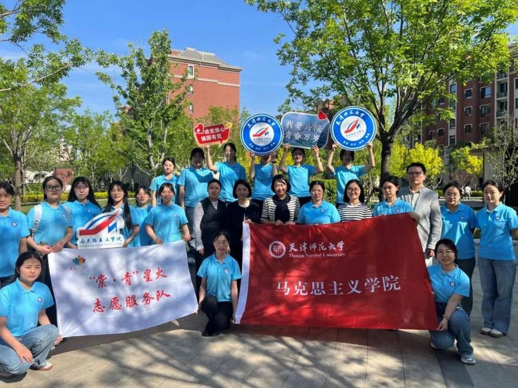 馬克思主義學院學生身著“天青藍”,在天津市津南區海棠街道黨群服務中心開展“牢記囑托擔使命 善作善成勇爭先”五四青年節主題活動。青年學生以互動體驗、實地參與、共話“夢想”等多種形式,沉浸式參與社區基層工作,實地體驗基層民情,將志愿服務送到老百姓門口。