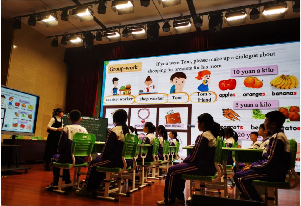 授課環節,蔣文杰和孫溆淼根據同一研究課題“外研社七年級下冊M5 Shopping, Unit 1 What can I do for you?”分別基于逆向教學設計和產出導向法進行授課。蔣文杰注重目標提出與落實,融入課程思政元素,由淺入深地教會學生運用目標句式,孫溆淼則細分教材內容,思路清晰、層層遞進,運用pair work和group work多種形式調動學生的課堂參與度,并在教學中融入了教—學—評一體化的思想以及育人理念。