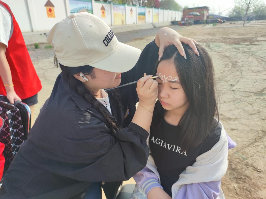 美術(shù)與設(shè)計學(xué)院志愿者們精心策劃彩繪活動為梨花節(jié)活動錦上添花,拉滿了人氣。同學(xué)們使用環(huán)保顏料,將精心設(shè)計的圖案描繪在小朋友們的臉龐和手臂上。活動受到了到場群眾的熱烈歡迎,不僅小朋友們積極參與,許多家長也躍躍欲試。在短短兩天的活動中,學(xué)院志愿者先后為到場大朋友、小朋友們繪制彩繪500余人次。涂滿彩繪的笑臉與春日盛開的梨花相映成趣,讓村民群眾感受到了梨花之美,享受了藝術(shù)之美,體驗了文化之美,更激發(fā)了許多小朋友們對繪畫藝術(shù)的興趣和熱愛。
