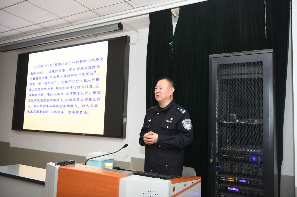 劉保紅以豐富的執(zhí)法經(jīng)驗和生動詳實的案例,圍繞著“全國交通安全日”的宣傳教育精神,深入淺出地闡述了交通安全的重要性,并對日常生活中常見的交通違法行為進行了重點剖析,警示大家嚴(yán)格遵守交通法規(guī),做到知法、懂法、守法。講座中,他不僅詳細解讀了一系列常見的交通標(biāo)志標(biāo)線的含義和功能,還通過現(xiàn)場演示的方式,生動展示了交警常用的手勢指揮信號,使廣大師生能夠更直觀地理解和掌握重要交通指示規(guī)則。此外,針對校園內(nèi)外普遍存在的停車問題,劉保紅專門就如何規(guī)范停車進行了細致講解,引導(dǎo)師生正確停放車輛,避免因不規(guī)范停車行為導(dǎo)致的交通擁堵和安全隱患。還他針對突發(fā)交通事故的處理流程和應(yīng)對措施,著重強調(diào)了事故發(fā)生后的自救互救、及時報警等關(guān)鍵步驟,讓在校師生對緊急情況下的自我保護和合理處置有了深刻認(rèn)識。