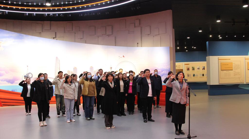 觀展結束后,計信學院黨委書記劉鋒帶領師生黨員面向黨旗,重溫入黨誓詞,感悟入黨初心,用對黨無限忠誠的錚錚誓詞,堅定師生理想信念,強化責任擔當。