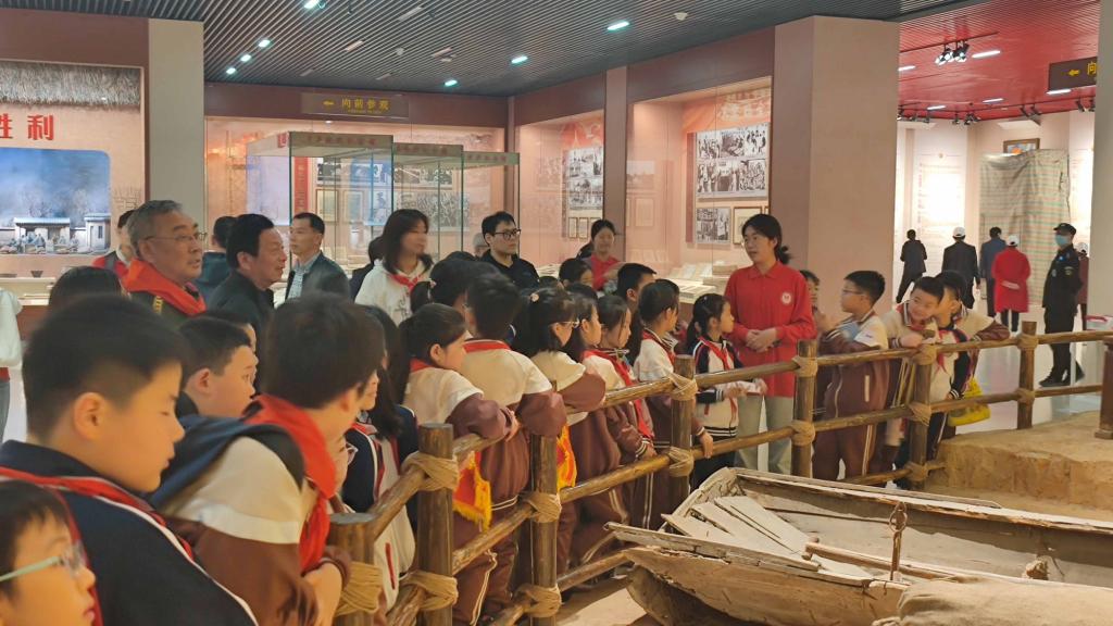 平津戰役紀念館是全面展現平津戰役取得偉大勝利的專題性紀念館,是開展愛國主義和革命傳統教育的重要陣地。研學過程中,全體師生懷著崇敬之情依次參觀了序廳、戰役決策廳、戰役實施廳、人民支前廳、英烈業績廳、偉大勝利廳六個展廳。平津戰役沙盤推演、天津總攻金湯橋會師的珍貴照片、解放戰爭中使用過的長短槍支、人民群眾支援前線的木船和推車、英烈墻上鐫刻的一串串烈士姓名……將現場師生帶回到激情燃燒的革命戰斗歲月。師生認真聽取趙全順老師的生動介紹,深入了解相關歷史細節,深刻感悟中國共產黨人砥礪奮進的初心和使命。