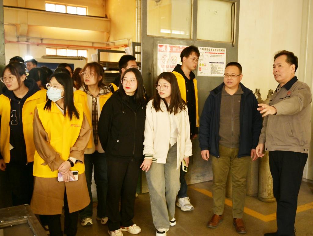 在天津鑄金科技開發股份有限公司,師生一行在公司負責人的帶領下,先后參觀了檢測設備實驗室、科研開發實驗室等地。在交流會上,公司監事會主席王高紅介紹了企業發展歷程、企業產品研發和實踐領域、未來應用前景以及當前企業崗位招聘要求等。同學們主動交流、積極提問,并在現場投遞簡歷。