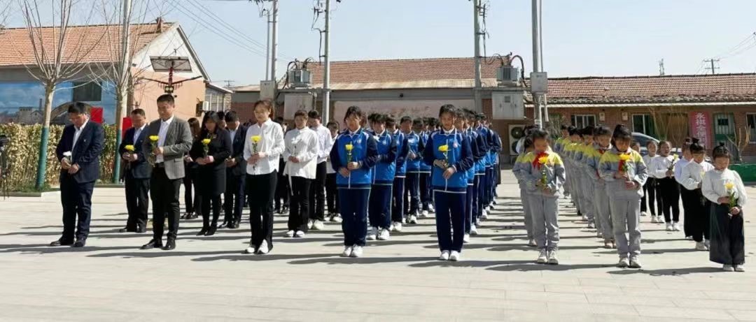 簽約儀式后,學院學術碩士黨支部學生黨員與天津市河頭學校師生、家長代表一起來到安幸生烈士故居,開展“清明時節黨旗揚,家風傳承團隊強”大中小幼一體化清明節主題實踐活動。活動中,學生黨員在安幸生烈士紀念碑前高唱國歌,并向烈士塑像三鞠躬,敬獻鮮花,表達了對先烈的深切緬懷和崇高敬意。在“傳承精神”環節,學生黨員為河頭學校團員佩戴團徽,并與師生一起聆聽了河頭學校“幸生筑夢”思政講師團團長、校長王秀平的現場思政課。在參觀安幸生烈士故居過程中,學院學生黨員高若瑩與河頭學校團員、少先隊員、幼兒園小朋友共同組建宣講團,互相講解烈士英勇事跡,帶領在場師生重溫可歌可泣的革命歷史。