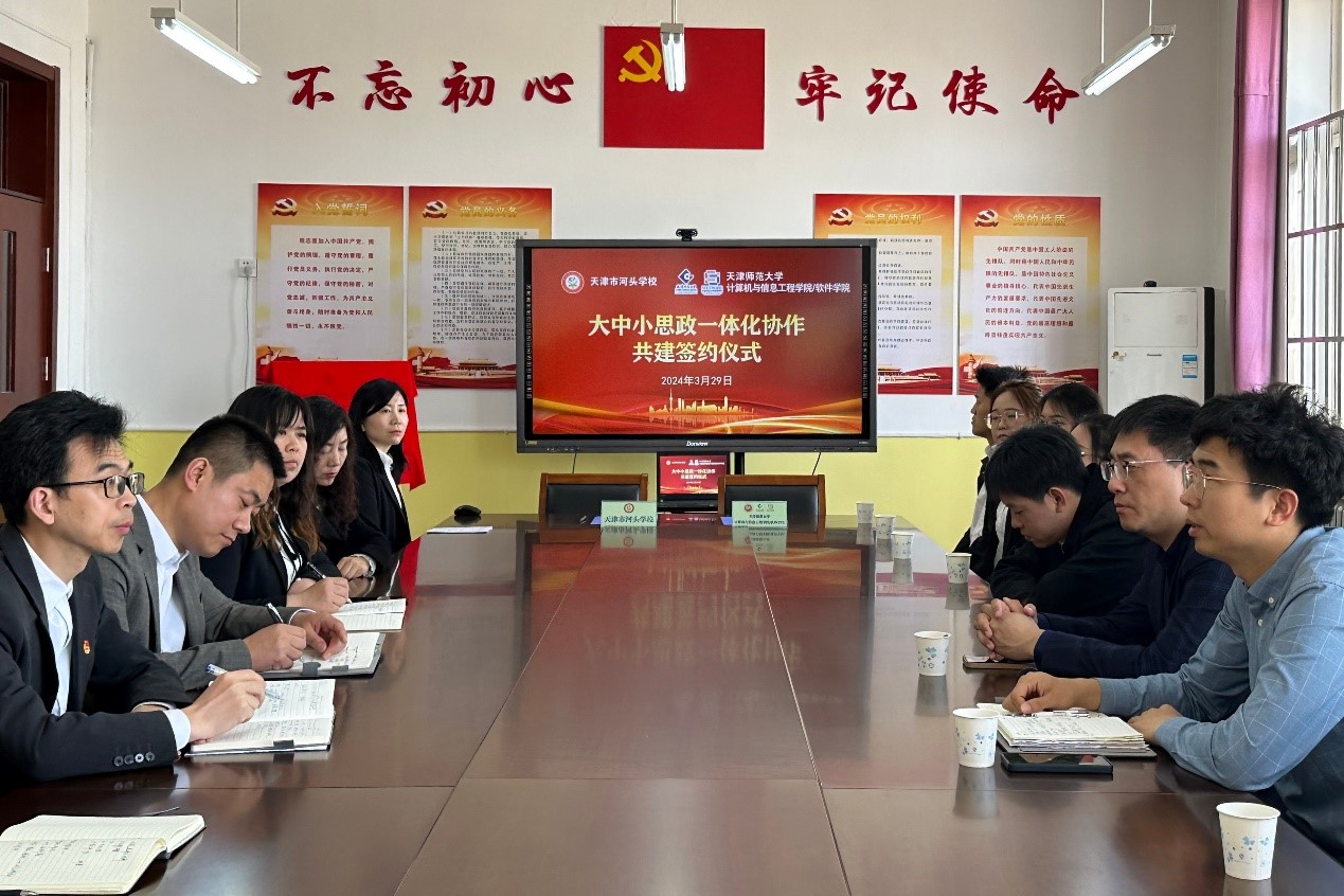 計算機與信息工程學院消息(通訊員 侯慧秀 張超)為深入學習貫徹習近平總書記視察天津重要講話精神,進一步推進大中小學思想政治教育一體化建設,3月29日下午,天津師范大學計算機與信息工程學院、軟件學院與天津市河頭學校舉行大中小一體化思政育人共建協議簽約儀式。