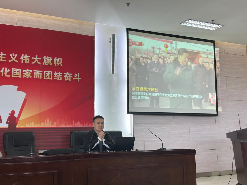 周志偉副教授首先用生動鮮活的故事講述了習近平總書記視察天津的過程,而后《以中國式現代化全面推進中華民族偉大復興》為題,從歷史維度、理論維度、實踐維度三個維度出發,對中國式現代化的歷史邏輯、中國式現代化的理論內涵、中國式現代化的實踐要求進行了深刻闡述。他強調:“習近平總書記在黨的二十大報告中對新時代新征程黨的使命任務作出了重要戰略部署,明確提出了從現在起黨的中心任務,向全黨全國人民發出了以中國式現代化全面推進中華民族偉大復興的動員令。奮進新時代新征程,我們要認真學習領會報告對中國式現代化作出的系統闡述、戰略部署,深刻理解把握以中國式現代化全面推進中華民族偉大復興的歷史邏輯、理論內涵、實踐要求?!?br>