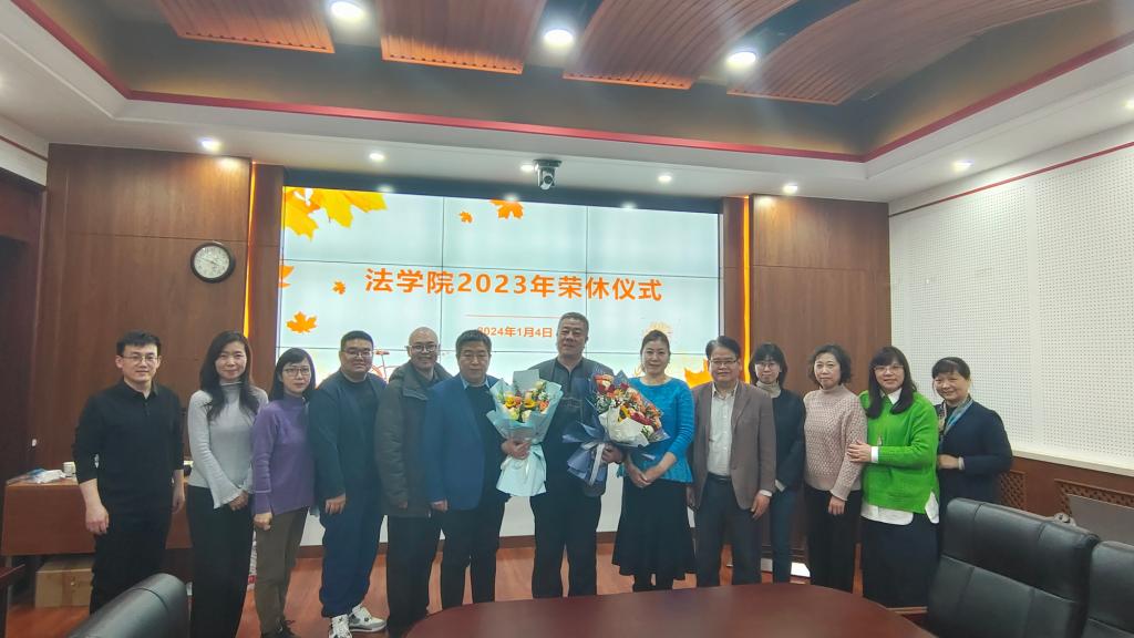 法學院消息(通訊員 王欣)1月4日,法學院在澍澤學術報告廳舉行2023年退休教師榮休儀式。阮大強、彭炳金兩位退休教師和學院領導班子成員出席儀式,基礎法學教研部、訴訟法學教研部全體在職教師和學院行政人員參加儀式。