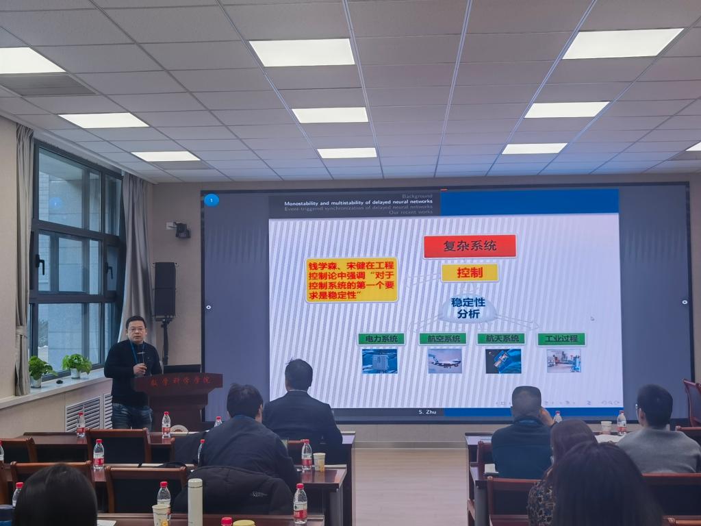 研討會上,四川大學楊鑫松教授、中國礦業大學朱松教授、東南大學許文盈教授和楊紹富教授、中國石油大學(華東)王健教授、中國地質大學(武漢)王雷敏教授、哈爾濱工業大學(威海)秦泗甜教授以及我校數學科學學院周立群教授和劉娜博士等多位專家學者圍繞切換系統協同控制、憶阻系統理論及應用、多智能體系統協同控制與決策、復雜神經網絡同步控制、神經動力學優化理論和算法等介紹了各自領域的最新研究進展及研究成果。參會人員認真聽取報告,并從科學問題、交叉合作和應用研究等方面與各位報告人展開了熱烈討論。