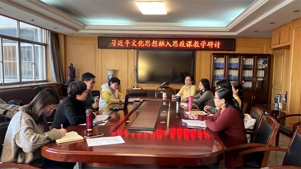 思政教研室教師結合自己的學習體會,暢談理論學習的收獲以及將其融入思政課教學的思考和實踐探索。思政課教師、副院長蘇愛潔教授分享了在《習近平新時代中國特色社會主義思想讀本》課相關章節教學時,如何把握“文化自覺——文化自信——文化自強”脈絡,將習近平文化思想融入教學,實現在學生心中厚植文化自信、文化自強的教學目標。思政課教師、教務科副主任賀溪結合網絡視頻《逃出大英博物館》,分享了將傳承中華民族優秀文化融入《形勢與政策》課教學,激發學生愛國之情和報國之志的過程。