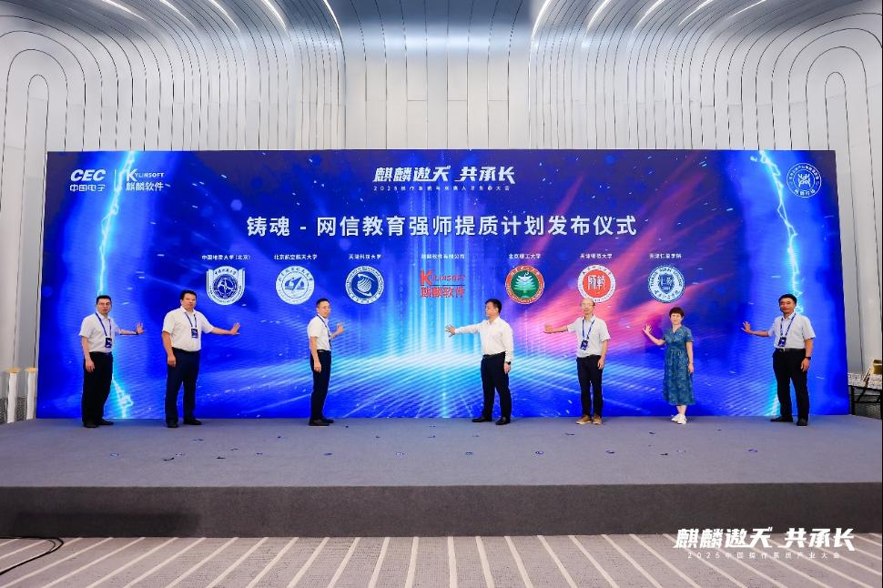 大會期間舉行了“鑄魂-網信教育強師提質計劃”的重磅發布儀式。作為該計劃的重要參與單位之一,我校將依托此平臺,進一步加強與麒麟軟件等行業領軍企業的合作,聚焦操作系統“根技術”人才培養,大力弘揚教育家精神,持續賦能學院教師的專業教學能力與數字素養提升,打造一支高水平的網信領域“金師”隊伍。