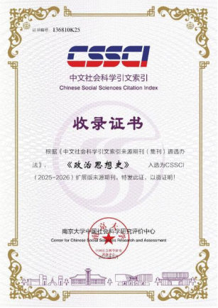 《政治思想史》入選為CSSCI(2025-2026)擴展版來源期刊;