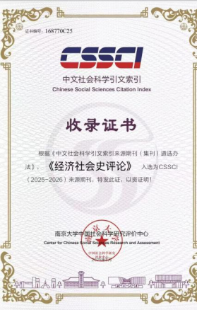 《經濟社會史評論》入選為CSSCI(2025-2026)來源期刊;