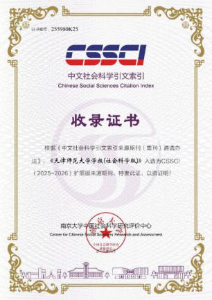 《天津師范大學學報(社會科學版)》入選為CSSCI(2025-2026)擴展版來源期刊;