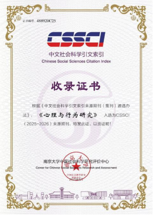 《心理與行為研究》入選為CSSCI(2025-2026)來源期刊;