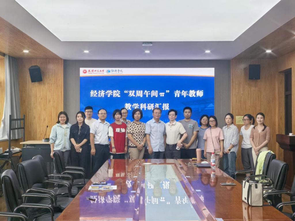 本站訊(通訊員 白帆)9月18日下午,經濟學院組織開展首場“雙周午間π”青年教師教學科研匯報活動。學院黨委書記郭旭,黨委副書記、院長呂景春,副院長唐詩華與“勝藍”青年教師訓練營成員齊聚,共赴這場聚焦青年教師成長的學術交流之約。
