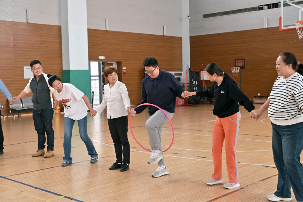 活動邀請學校體育科學學院教師艾麗欣擔任引導,她憑借專業(yè)的運動心理學和團體心理輔導等相關知識,帶領老師們凝心聚力,共同完成了一場深入人心的團隊心靈之旅。活動現(xiàn)場氣氛熱烈,老師們積極配合,通過“松鼠搬家”快速破冰,拉近彼此之間距離,“趣味接力賽”“心有千千結”“情緒垃圾站”“默契穿越”“擊鼓顛球”各環(huán)節(jié)層層遞進,老師們一步步卸下工作中的疲憊,感受心與心的交流,體驗彼此默契配合、團隊協(xié)作的力量,將“情緒包袱”轉化為彼此的共情與鼓勵。在沉浸治愈的舒壓氛圍里釋放內心壓力,以更積極、更強健的心理狀態(tài)為教育工作蓄力。