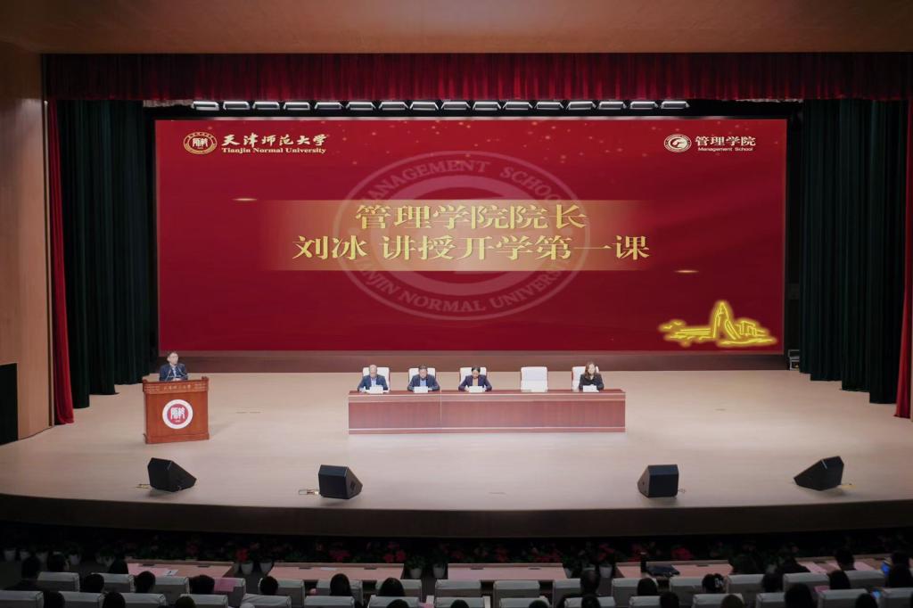 本站訊(通訊員 時(shí)晟蓉)10月16日,天津師范大學(xué)管理學(xué)院在國際中文教育交流中心舉辦開學(xué)第一課暨師生聯(lián)歡活動(dòng)。學(xué)院黨委副書記、院長(zhǎng)劉冰以《在“內(nèi)卷”與“躺平”之間:尋找屬于你們的廣闊天地》為題,為全體新生帶來一場(chǎng)富有思辨性與啟發(fā)性的開學(xué)第一課。