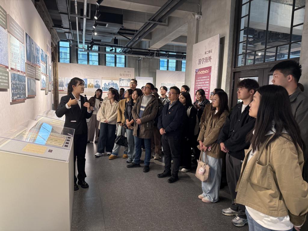 北洋法政學堂是李大釗先生早期思想孕育和形成的重要搖籃。師生們跟隨講解員,步入《鐵肩擔道義·熱血潤山河——李大釗與天津》主題陳列展。一張張老照片、一件件珍貴文獻,都在無聲地訴說著青年李大釗在天津求索真理、揮斥方遒的崢嶸歲月。博士生黨員鹿曉東帶領大家全面回顧了李大釗先生的革命生涯,為這段歷史注入了當代的回響。