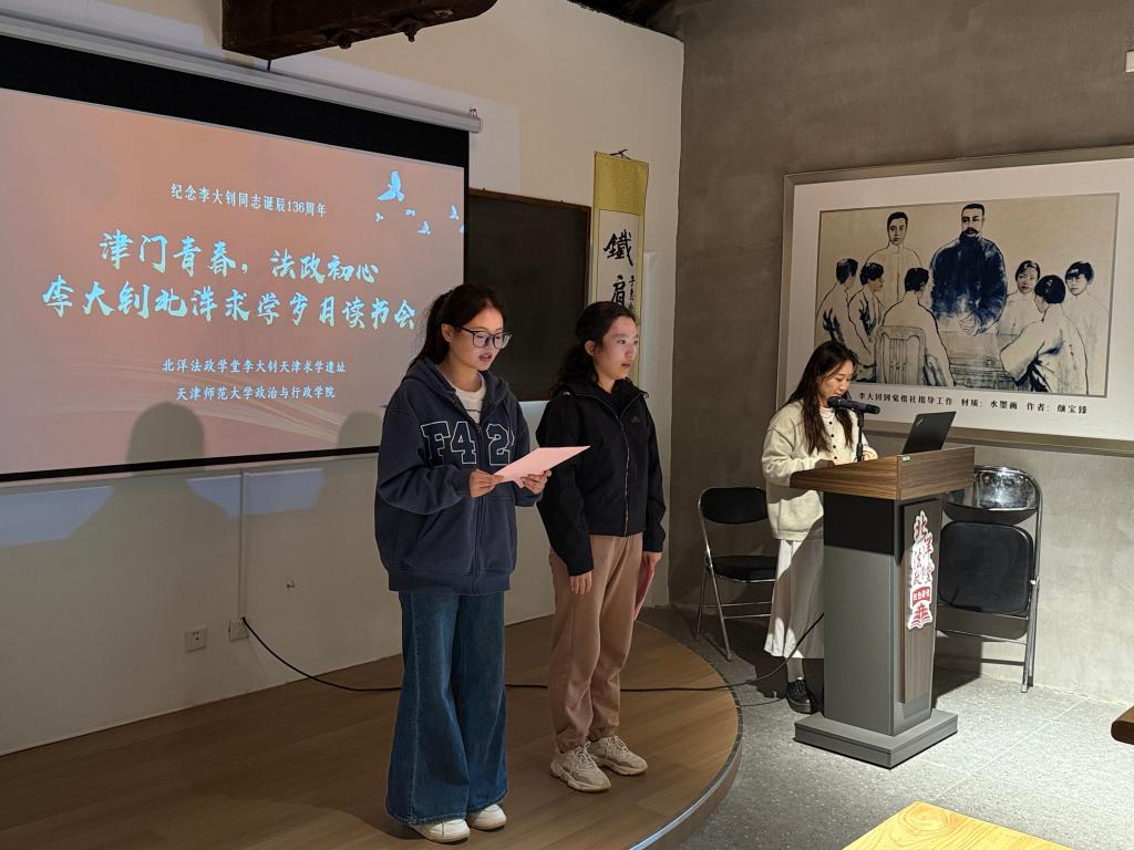 在“津門青春法政初心”李大釗北洋求學歲月讀書會上,三位黨支部書記帶領大家齊聲誦讀《青春》選段,瑯瑯書聲匯成一片鏗鏘有力的聲浪,在古樸的梁柱間回蕩。這是當代青年用最真摯的聲音,向百年前的“青春”宣言作出的最有力的回應,是紅色基因在血脈中奔騰不息的有力證明。